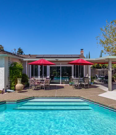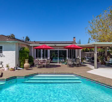 This beautifully maintained home has been cherished by the same owner for over 20 years, with thoughtful updates throughout — including a new kitchen, roof, windows, skylights, and flooring. The sparkling pool and expansive yard offer an ideal setting for relaxation and play. The primary suite features direct access to the pool and a cheerful view. A fully enclosed sunroom adds exceptional versatility, complementing the formal living room and spacious family room — three distinct gathering spaces for entertaining or everyday living. With minimal steps to the front entry, this home is accessible and welcoming to all ages.