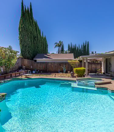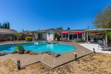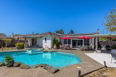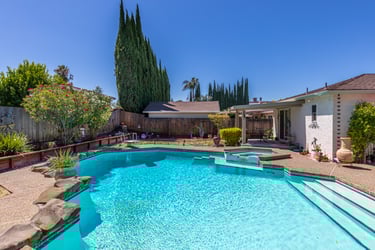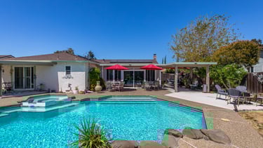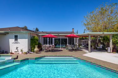 This beautifully maintained home has been cherished by the same owner for over 20 years, with thoughtful updates throughout — including a new kitchen, roof, windows, skylights, and flooring. The sparkling pool and expansive yard offer an ideal setting for relaxation and play. The primary suite features direct access to the pool and a cheerful view. A fully enclosed sunroom adds exceptional versatility, complementing the formal living room and spacious family room — three distinct gathering spaces for entertaining or everyday living. With minimal steps to the front entry, this home is accessible and welcoming to all ages.