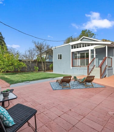 A spacious, detached in-law unit (ADU) in the backyard provides exceptional flexibility for multi-generational living, guest accommodations, or a private home office retreat. Mature trees frame the property with a storybook ambiance, while the flat, oversized yard offers ample space for play, gardening, or future expansion.